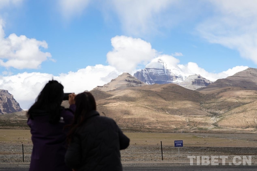 圖為游客在岡仁波齊下拍照留影 攝影:邊子捷