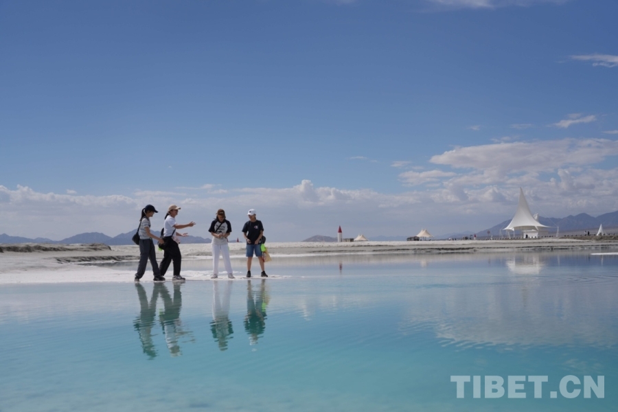 在海西蒙古族藏族自治州格爾木市,海拔2670米的察爾汗鹽湖,翠綠之美令人震撼,風(fēng)起波動(dòng),湖面如碎鉆鋪就的星河;天然形成的鹽花形態(tài)各異宛如珊瑚叢生,在陽(yáng)光下,閃耀著璀璨的光芒;浮在鹵水上的“萬丈鹽橋”延伸至天際,橫跨湖面,還有周邊的現(xiàn)代化采鹽船,輸鹵管道,車來車往,工業(yè)設(shè)施與自然景觀形成強(qiáng)烈對(duì)比。來自妙法寺劉金龍中學(xué)三位女生欣賞著美景,也紛紛討論這次令人驚嘆的“自然課堂”。鐘澄情同學(xué)不自禁感慨:“這里跟網(wǎng)上宣傳的一樣美!就像是上帝打翻的蘋果汁。”曾婉晴同學(xué)驚嘆道:“曾經(jīng)我只聽說過茶卡鹽湖,來到這里才知道察爾汗鹽湖是中國(guó)最大、世界第二大的鹽湖,面積相當(dāng)于56個(gè)茶卡鹽湖,鹽儲(chǔ)量可以讓全球80億人吃上兩千年?!倍S馨月同學(xué)更加震撼這里工業(yè)與自然相互交融的獨(dú)特魅力,直呼這是一座真正的“寶庫(kù)”!