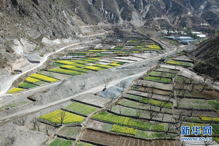 這是3月17日在舟曲縣大川鎮(zhèn)境內(nèi)拍攝的油菜花(無人機(jī)照片)。新華社記者 范培珅 攝