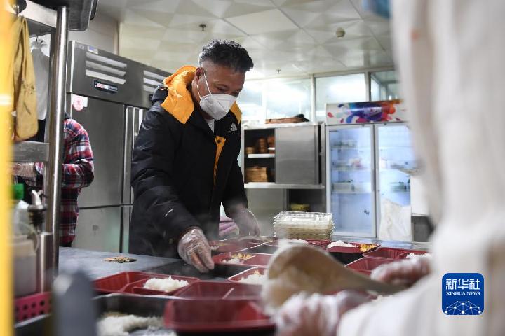 10月30日,羅宗周正在餐廳后廚為疫情防控人員準(zhǔn)備餐食。新華社記者 吳剛 攝