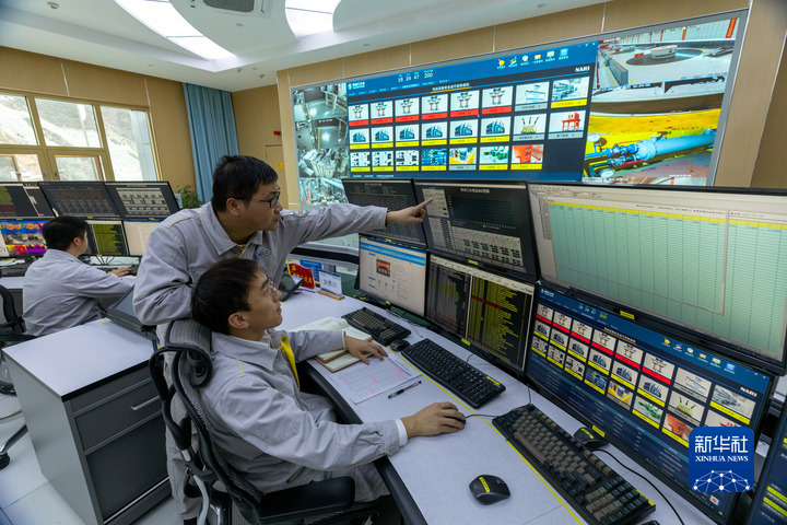 3月17日,在雅礱江兩河口水電站中控室,值班員利用智能監(jiān)控系統(tǒng)監(jiān)測(cè)水電站運(yùn)行情況。新華社記者 沈伯韓 攝