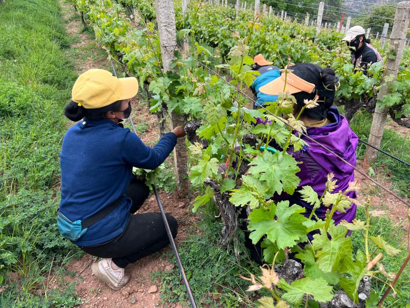 為不斷拓寬農(nóng)戶增收路子,公司與當(dāng)?shù)馗裆C范淦咸逊N植專業(yè)合作社合作,采取“租賃+務(wù)工”模式,按租賃每畝土地30個工,每個工120元的方式,為當(dāng)?shù)卮迕裉峁┬藜?、采摘、釀酒等各類就業(yè)崗位。在此基礎(chǔ)上,村黨總支積極聯(lián)系香格里拉酒業(yè)股份有限公司,通過訂單收購方式,在阿東村下片四個村民小組收購赤霞珠,霞多麗,西拉等品種,從2012年至今每年以3.6元每公斤收購,戶均收入達12910元。