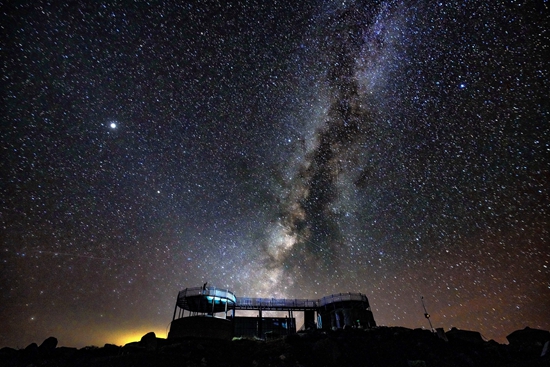 若從高空俯瞰,觀測站外圓內(nèi)方,宛若一枚古銅錢的巨陣,守候在青藏高原海子山古冰川遺跡的無人區(qū)。