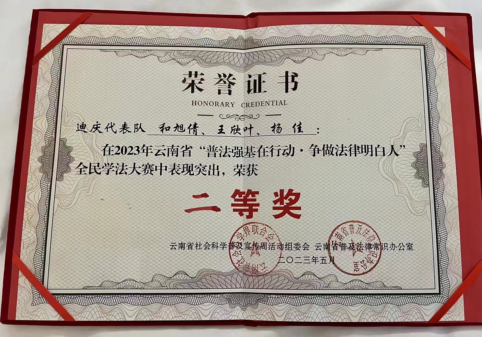 迪慶代表隊在“普法強基在行動·爭做法律明白人”全民學(xué)法大賽中榮獲二等獎