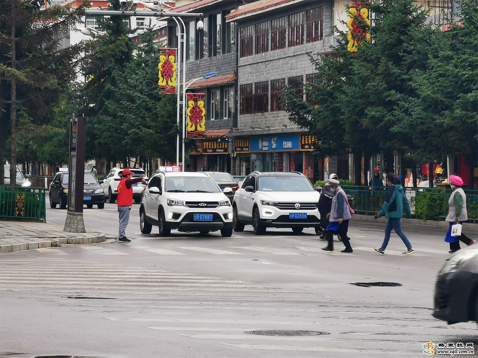 6月9日上午8時,香格里拉文明交通“紅馬甲”們開始了一天的文明交通勸導服務。