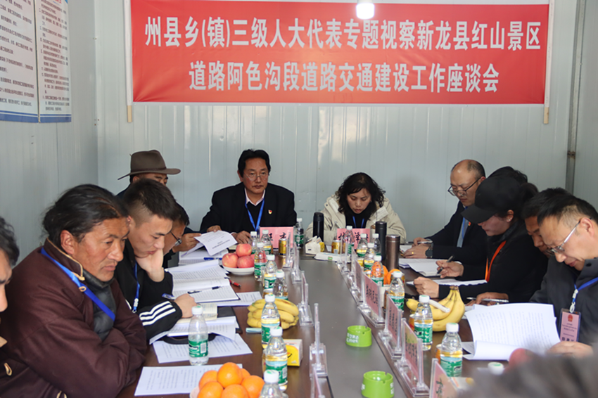 “設(shè)計車流承載量有多大,什么時候能夠完全竣工?”“要件都辦齊沒有?資金到位情況咋樣?”“全縣群眾對這條路充滿期望和關(guān)注,一定要加快進度、嚴格監(jiān)管,保證安全、質(zhì)量和環(huán)保;政府要統(tǒng)籌推動,相關(guān)部門要各司其職,確保把這條路建成惠民路、發(fā)展路、生態(tài)路、廉潔路……”2023年4月7日,新龍縣紅山景區(qū)道路阿色溝段建設(shè)施工現(xiàn)場,二十多名州、縣、鄉(xiāng)人大代表一邊查看道路建設(shè)情況,一邊對縣政府分管副縣長和相關(guān)部門負責人提出問題和建議。一問一答之間,彰顯人大依法履職、服務(wù)發(fā)展的責任和擔當。