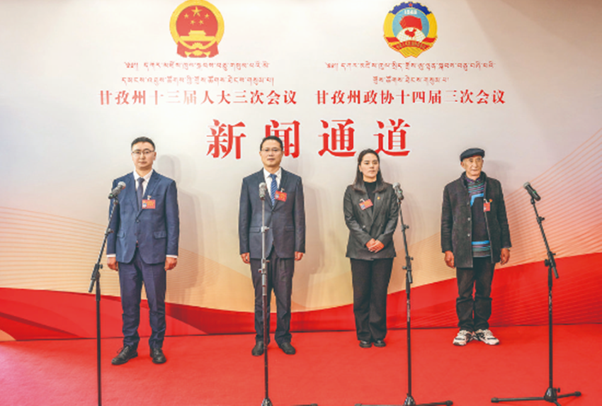 1月30日下午,甘孜州十三屆人大三次會(huì)議“代表通道”正式開(kāi)啟。瀘定縣委副書(shū)記、縣長(zhǎng)王蕾,得榮縣日雨鎮(zhèn)黨委書(shū)記江潔,亞丁景區(qū)管理局游客服務(wù)科科長(zhǎng)余光榮,瀘定縣磨西鎮(zhèn)青岡坪村支部書(shū)記、村委會(huì)主任呂東才四位州人大代表在現(xiàn)場(chǎng)回應(yīng)社會(huì)關(guān)切熱點(diǎn)。