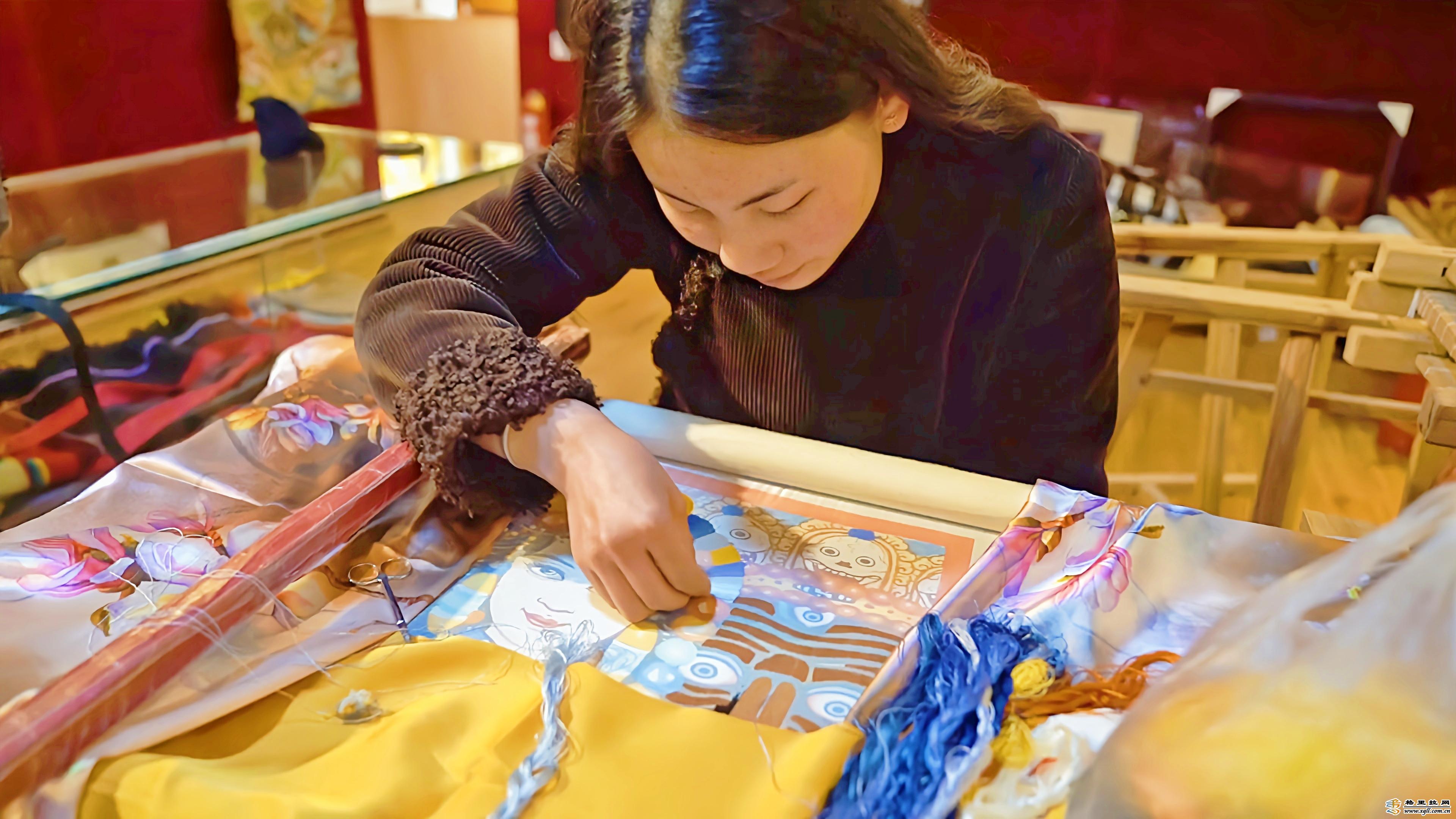 走進位于獨克宗古城的香格里拉藏繡文化藝術院,一件件精美的手工藏繡作品陳列在展館內。堆繡、盤金、打籽針法展示出不同風格的藏繡手法,細韌、明亮而又富有彈性的絲線使得繡品艷麗而有光澤,吸引著南來北往的游客前來參觀。