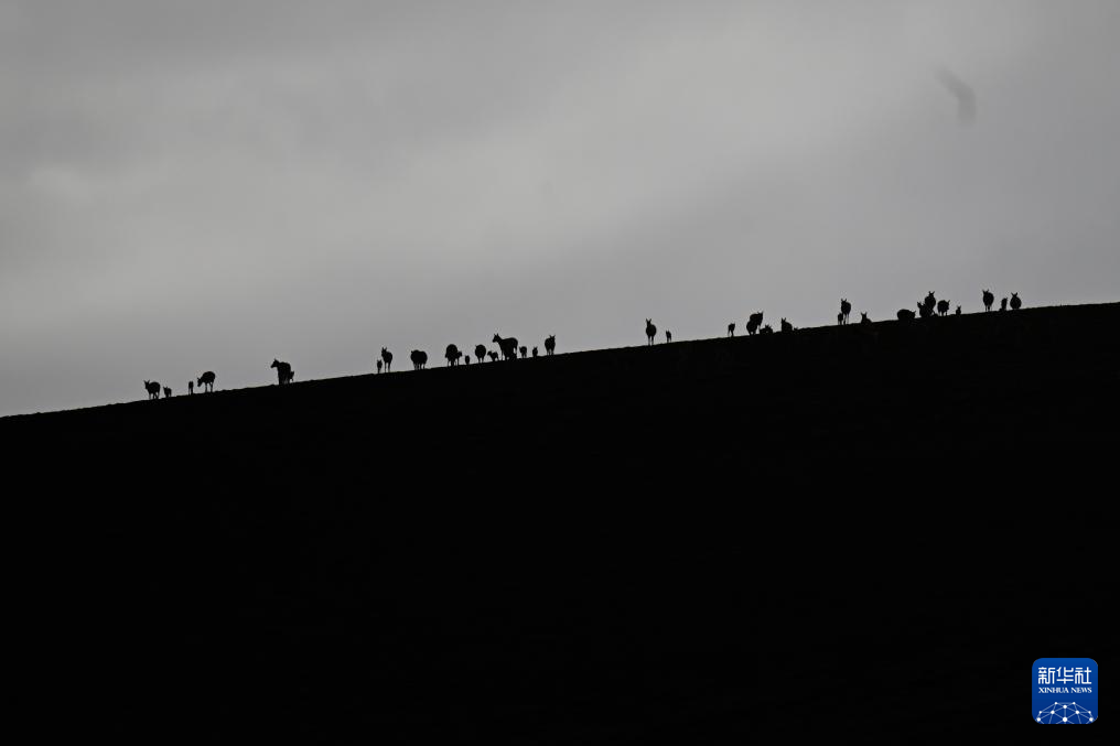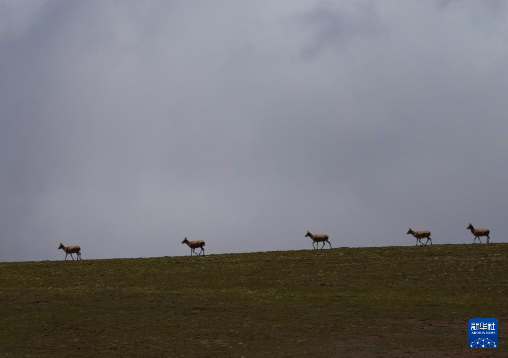 7月8日,在可可西里卓乃湖區(qū)域,幾只藏羚羊在活動(dòng)。新華社 杜笑微 攝
