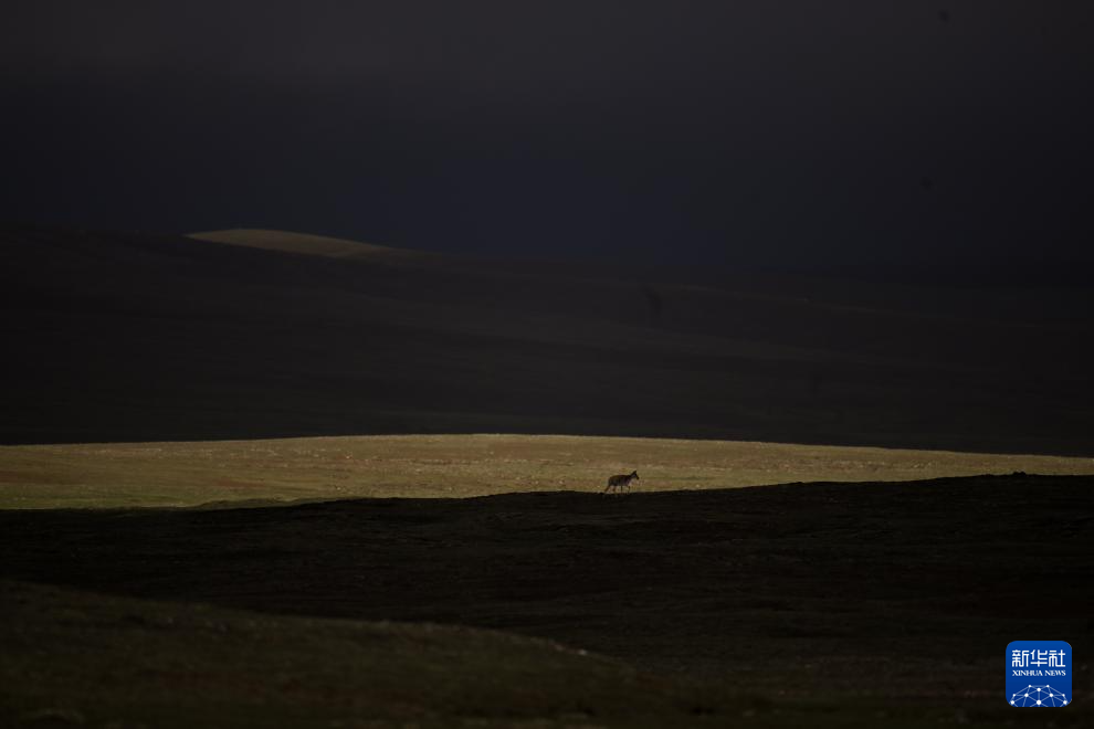 7月9日,在可可西里卓乃湖區(qū)域,一只藏羚羊在活動(dòng)。新華社記者 張龍 攝