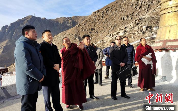 嘎瑪澤登(右三)在色拉寺調(diào)研?!∝暽@?攝
