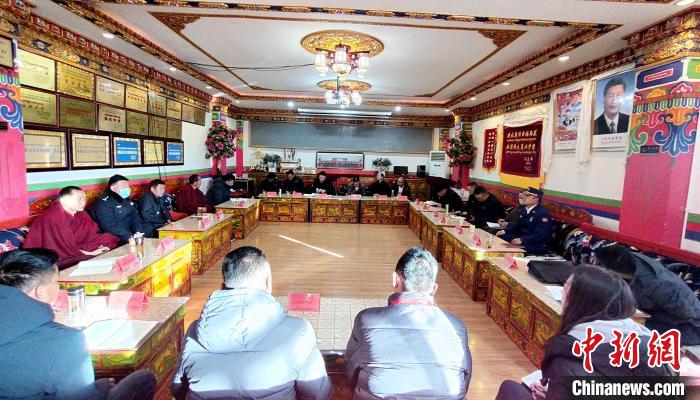 嘎瑪澤登與寺廟僧人、駐寺干部等座談?!∝暽@?攝