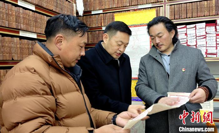 嘎瑪澤登(中)在色拉寺調(diào)研?!∝暽@?攝
