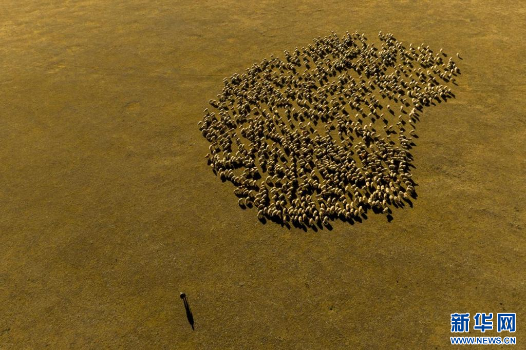 扎西松多村集體養(yǎng)殖的千只綿羊(無人機照片)。新華網(wǎng) 旦增努布 攝