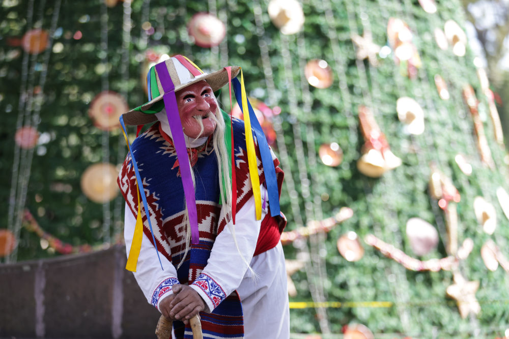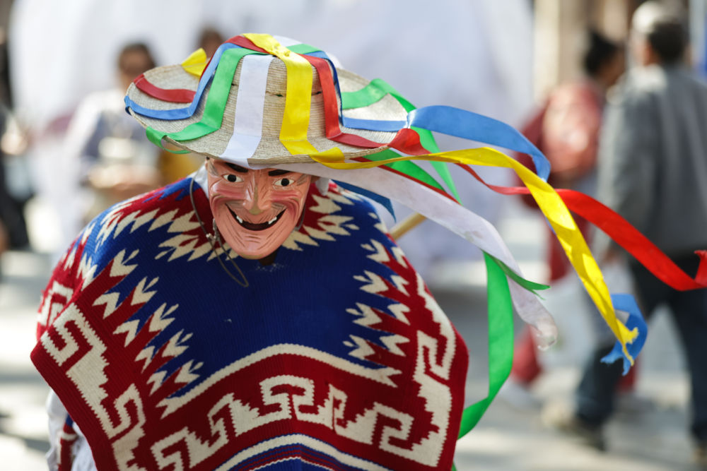 墨西哥面具舞中的“老者之舞”是墨西哥米卻肯州最具代表性的傳統(tǒng)舞蹈之一,起源于普列佩查原住民文化。這種舞蹈以其充滿活力的表現(xiàn)形式和文化象征而聞名,據(jù)說發(fā)展自墨西哥獨立之前人們向心目中的神明祈求豐收的儀式。在木屐的聲響與裝飾草帽的彩色絲帶互相映襯之下,每當老者之舞上演,米卻肯州帕茨夸羅的廣場便化身為一座承載古老記憶的舞臺。