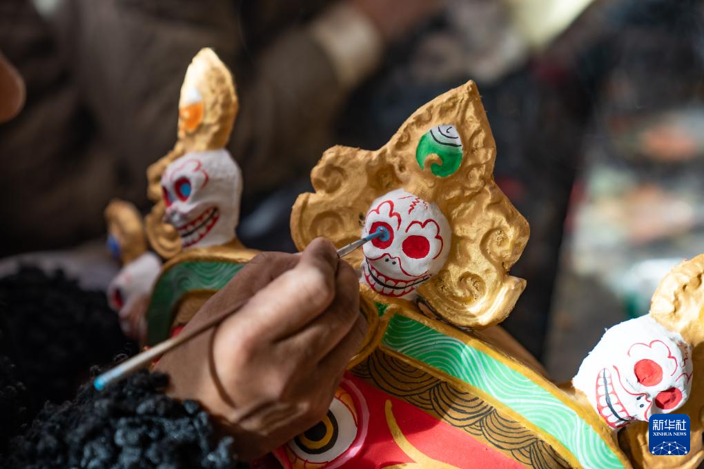 12月9日,拉薩達孜區(qū)雪鄉(xiāng)民間傳統(tǒng)手工藝農(nóng)民專業(yè)合作社的面具制作工匠制作傳統(tǒng)面具。新華社記者 丁增尼達 攝