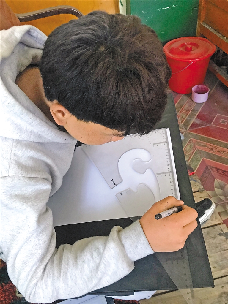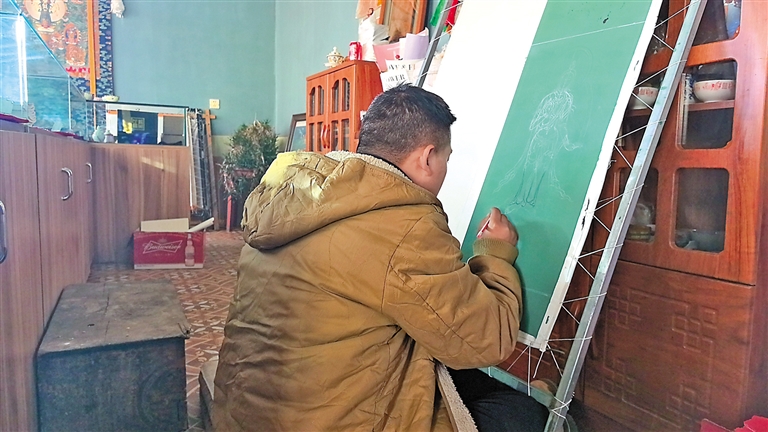 “那段時(shí)間是最難熬的,每天睜開眼除了吃飯,其他時(shí)間都在畫畫?!甭遄犯嬖V記者,當(dāng)他真正開始學(xué)習(xí)時(shí),才深刻體會(huì)到要想成為唐卡手藝人,需要付出更多努力?!耙苍脒^放棄,但還是咬咬牙堅(jiān)持了下來?!闭f到這里,洛追有些靦腆地笑了笑。