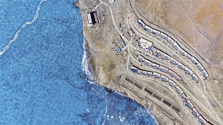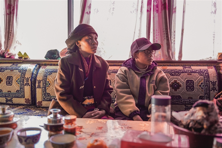 當(dāng)日,天空晴朗,在廣袤無垠、無樹木遮擋的曠野上,稍起一陣疾風(fēng),便會(huì)揚(yáng)起一層薄薄的黃沙。從村委會(huì)出發(fā),沿著冰湖畔的水泥小路前行,很快就來到了村民倫珠曲珍的家。一進(jìn)屋,厚實(shí)的木門便將凜冽的寒風(fēng)擋在了門外。“快請(qǐng)進(jìn),這幾天風(fēng)沙有點(diǎn)大,普莫雍措都沒以前藍(lán)了?!眰愔榍湟贿呹P(guān)門一邊熱情地笑著說道。