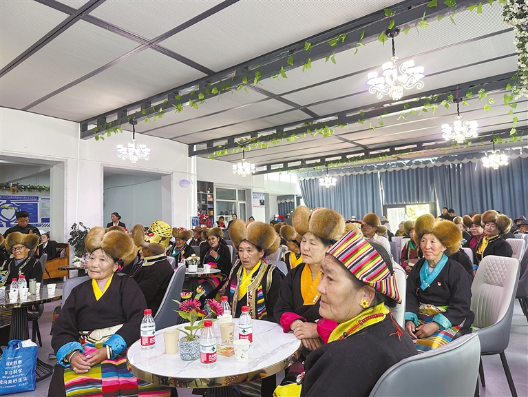 “山南瓊嘎頂·錦礱頤樂之家” 老年食堂揭牌儀式現(xiàn)場。 山南市乃東區(qū)澤當街道辦供圖