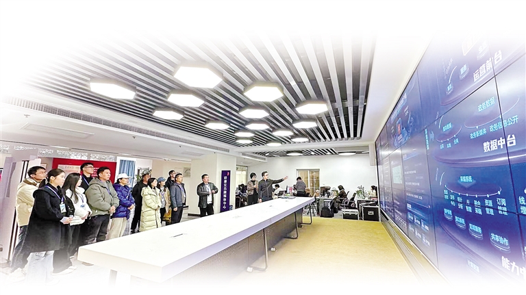圖為瓊結縣宣傳思想文化系統(tǒng)“鄉(xiāng)村數字文化”考察組在湖北省宜昌市三峽融媒體中心參觀學習。 記者 次仁平措 本報通訊員 倫珠澤仁 攝