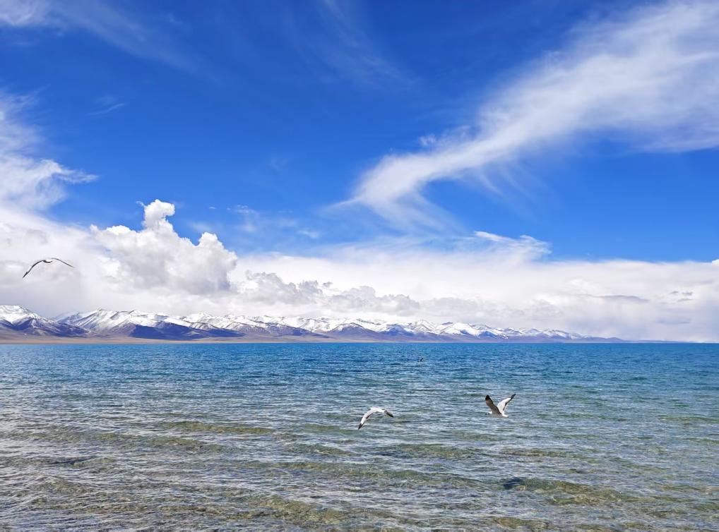 “我第一次來納木錯,真幸運能趕上‘開湖’盛景!”來自四川成都的游客白丹特意穿上了藏族傳統(tǒng)服裝來拍照,“這里每一幀都美得像畫,非常出片。”