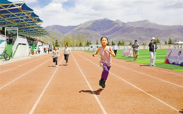 圖為學(xué)生在參加跑步比賽。記者 格桑倫珠 攝