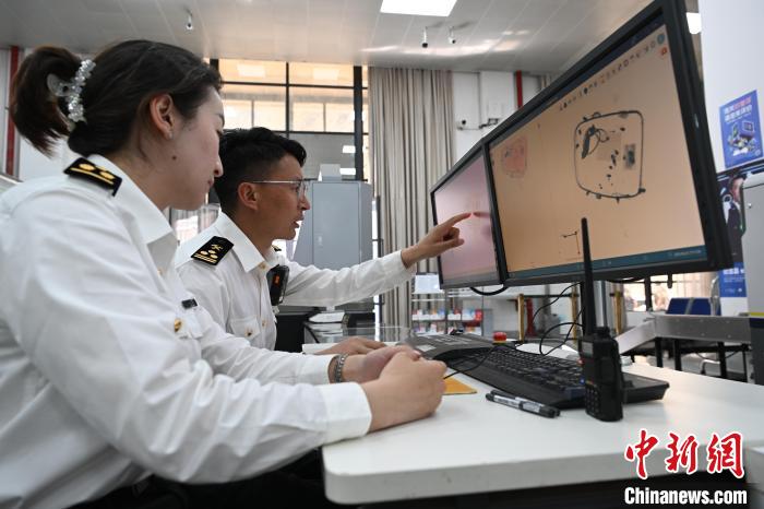 圖為西藏日喀則市吉隆縣吉隆口岸,海關(guān)查驗人員正對入境人員攜帶的物品開展細(xì)致查驗。貢嘎來松 攝