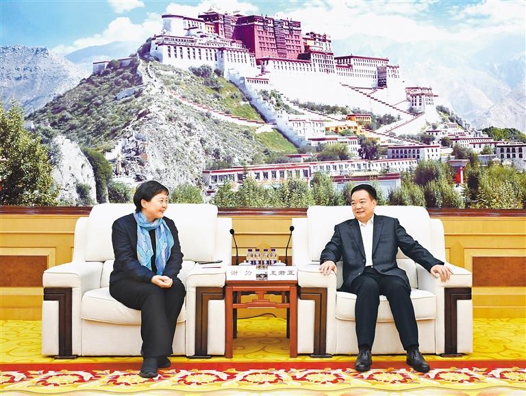 近日,自治區(qū)黨委書記王君正在拉薩與中國(guó)文聯(lián)黨組成員、書記處書記謝力率隊(duì)的中國(guó)文聯(lián)文藝志愿服務(wù)團(tuán)藝術(shù)家代表座談。