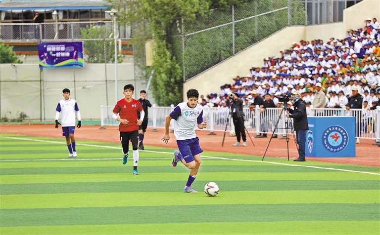 以球?yàn)槊?,“球”同存“誼”。5月20日下午,中國日喀則市珠峰雪鷹隊(duì)與阿根廷薩爾塔普納隊(duì)在日喀則市上海實(shí)驗(yàn)學(xué)校體育場上演了一場跨越山海的青少年足球友誼賽。賽場上,雙方球員迅速進(jìn)入狀態(tài),團(tuán)結(jié)配合、積極拼搶,用細(xì)膩的腳法,或急停、或變向、或假動(dòng)作,輕松晃過對(duì)手,射門得分,給觀眾呈現(xiàn)了一場精彩的足球比賽。