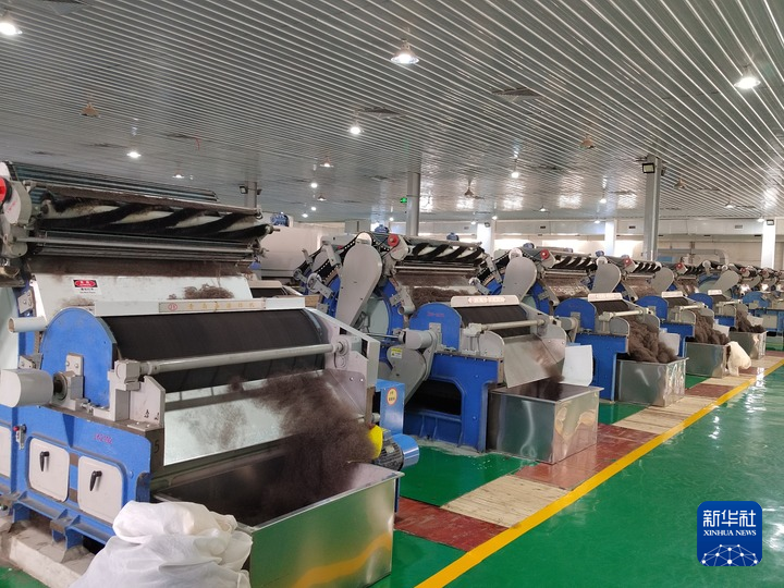 5月30日,西藏圣信工貿有限公司生產車間的自動分梳設備正在運轉。(受訪者供圖)