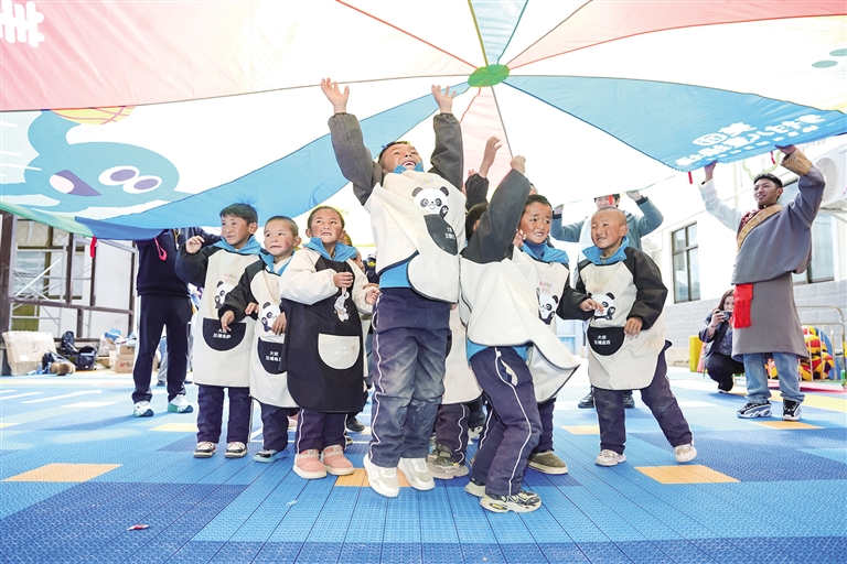 “老師快看!這里有跑道和斑馬線,太漂亮啦!”定日縣長所鄉(xiāng)幼兒園的拉巴次仁第一次踏上新落成的“太陽花”操場,興奮地邊跑邊向老師展示。據(jù)記者了解,此前孩子們?cè)谄茡p的懸浮地板上活動(dòng)時(shí)經(jīng)常摔倒,遇上雨雪天氣,戶外活動(dòng)也只能取消。