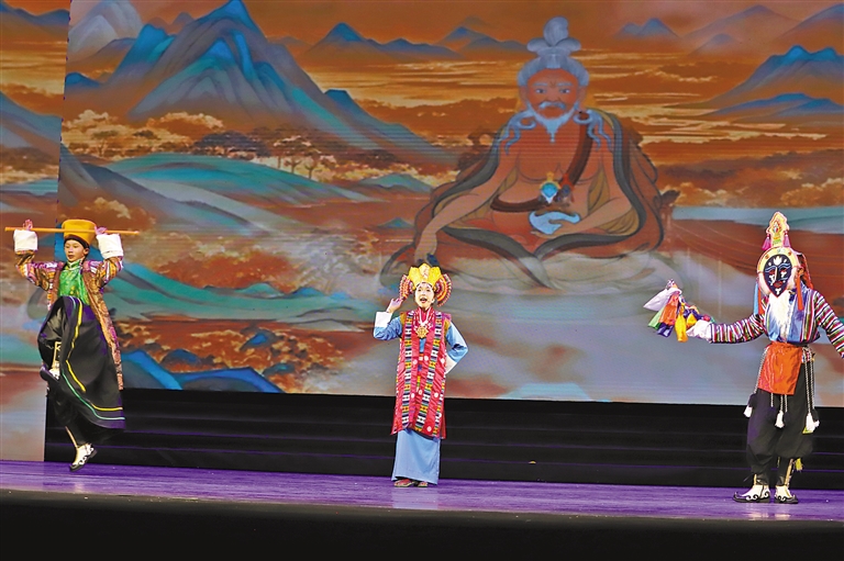 值此西藏自治區(qū)成立60周年、自治區(qū)群藝館(區(qū)非遺保護(hù)中心)“少兒藏戲(唱腔)”公益培訓(xùn)十周年之際,首部少兒版《文成公主》藏戲折子戲——《雪域童心頌文成》成功上演。17名平均年齡13歲的雪域少年,以赤誠之心重現(xiàn)漢藏和親歷史,讓人類非物質(zhì)文化遺產(chǎn)在新時代綻放璀璨光芒,奏響民族團(tuán)結(jié)的時代強(qiáng)音。