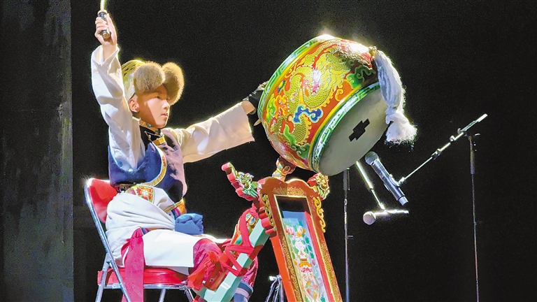 扎西多吉從小學(xué)一年級起便跟隨老師學(xué)藝,憑借扎實(shí)功底曾在“中國少兒戲曲小梅花薈萃”活動中獲得“小梅花”稱號?!八竟氖遣貞虻撵`魂節(jié)奏,每一次擊打都要帶著對傳統(tǒng)文化的敬意?!边@位14歲少年的專注與執(zhí)著,不僅收獲了藝術(shù)成就,更錘煉出沉穩(wěn)大氣的品格。母親措姆欣慰地表示:“看著孩子在藏戲?qū)W習(xí)中成長,是最幸福的事?!?/p>