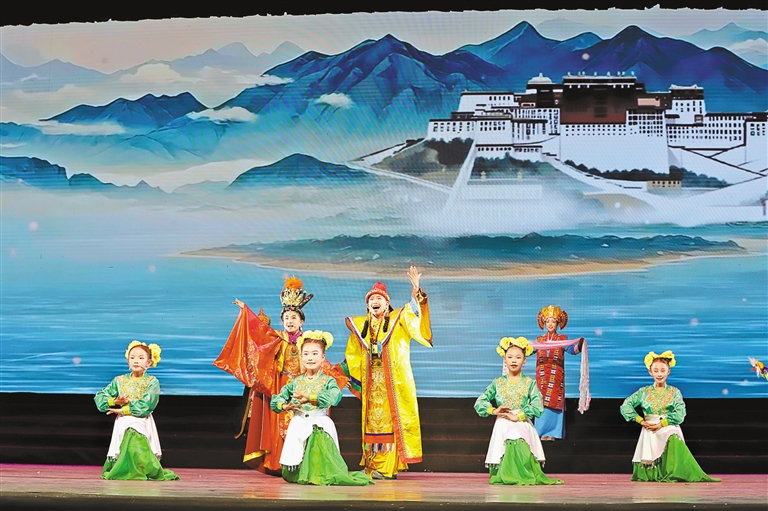 圖為《雪域童心頌文成》表演現(xiàn)場。