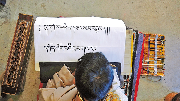 索朗多布杰介紹說,2008年,藏文書法經(jīng)國務院批準列入第二批國家級非物質(zhì)文化遺產(chǎn)名錄;2014年,尼赤派書法被列入第四批國家級非物質(zhì)文化遺產(chǎn)名錄擴展項目。