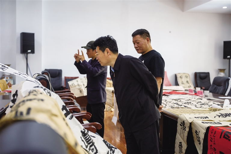 下午的漢文書法評(píng)選同樣精彩。兩百多幅參選作品,涵蓋楷書、行書、隸書、草書、篆書五種字體,風(fēng)格多樣,展現(xiàn)出扎實(shí)的書法功底和深厚的文化底蘊(yùn)。中國(guó)書協(xié)會(huì)員、西藏書協(xié)理事田中鶴認(rèn)真地審閱著每一幅作品,他感慨道:“活動(dòng)自啟動(dòng)便獲全國(guó)書法愛(ài)好者廣泛關(guān)注,參賽作品不僅數(shù)量可觀,質(zhì)量更值得肯定。”其中,一等獎(jiǎng)的楷書作品工整端莊,緊扣“民族團(tuán)結(jié)”主題,既彰顯書法藝術(shù)魅力,又傳遞出“高原紅石榴”象征的團(tuán)結(jié)奮進(jìn)精神,給評(píng)審團(tuán)留下深刻印象。