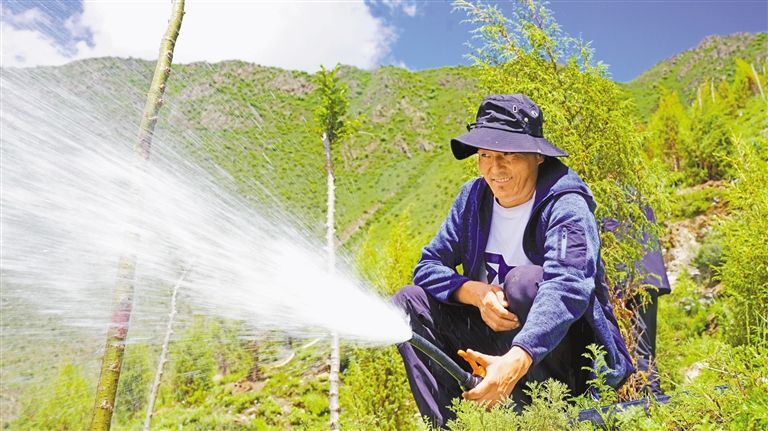 工程帶來(lái)的不僅是生態(tài)效益,更有可觀社會(huì)效益。項(xiàng)目實(shí)施以來(lái),累計(jì)吸納3541人次墨竹籍群眾參與建設(shè)。從挖穴栽苗到日常養(yǎng)護(hù),當(dāng)?shù)厝罕姵蔀樯鷳B(tài)建設(shè)主力軍。達(dá)瓦次仁感慨:“在家門(mén)口就業(yè),每日收入200多元,還能參與家鄉(xiāng)綠化,內(nèi)心踏實(shí)又滿足?!?/p>