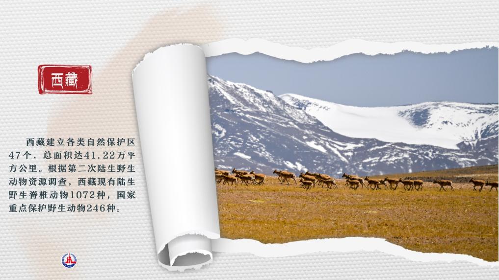 西藏建立各類自然保護區(qū)47個,總面積達41.22萬平方公里。根據(jù)第二次陸生野生動物資源調(diào)查,西藏現(xiàn)有陸生野生脊椎動物1072種,國家重點保護野生動物246種。