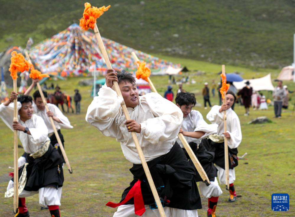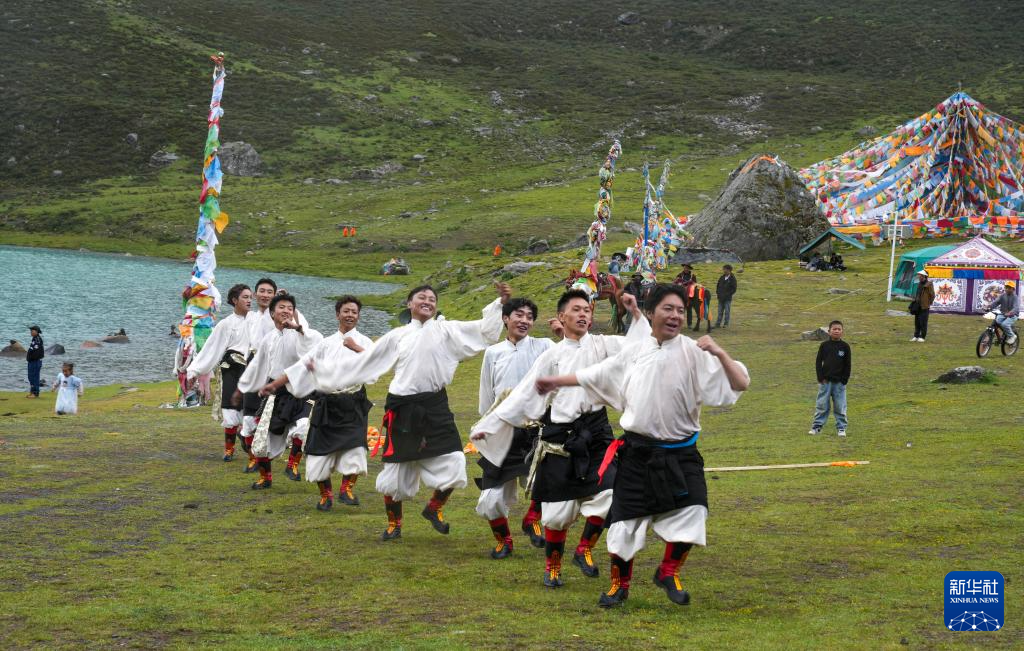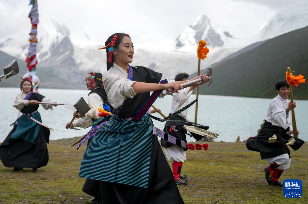 西藏那曲市比如縣藝術(shù)團的演員在薩普雪山景區(qū)為游客表演國家級非物質(zhì)文化遺產(chǎn)舞蹈“達布阿諧”(7月19日攝)。這是該藝術(shù)團今年在景區(qū)開展的第6場非遺展演活動。新華社記者 晉美多吉 攝