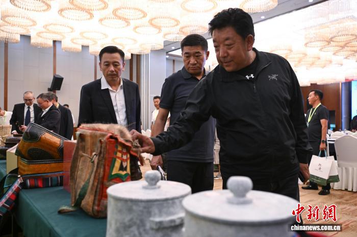圖為參會人員參觀特色產(chǎn)品展示區(qū)。貢嘎來松 攝
