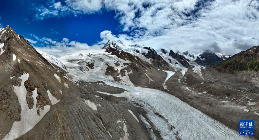 空中俯瞰祥格拉冰川(7月20日攝,無(wú)人機(jī)照片)。新華社記者 晉美多吉 攝