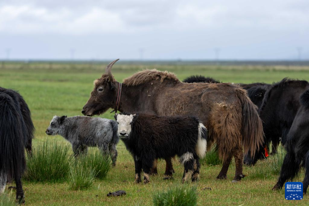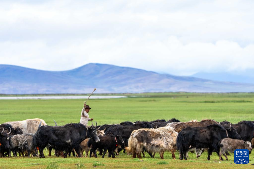 7月22日拍攝的瑪旁雍錯(cuò)濕地上的牦牛。新華社記者 旦增尼瑪曲珠 攝