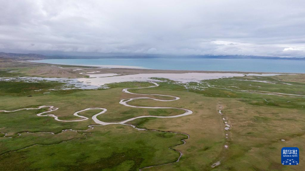 7月22日拍攝的瑪旁雍錯(cuò)濕地一景(無人機(jī)照片)。新華社記者 旦增尼瑪曲珠 攝