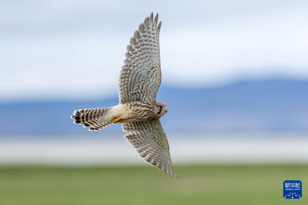 7月22日拍攝的瑪旁雍錯(cuò)濕地上棲息的國家二級保護(hù)野生動(dòng)物紅隼。新華社記者 旦增尼瑪曲珠 攝