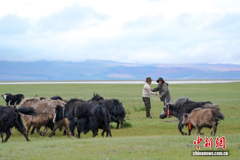 7月22日,在西藏阿里地區(qū)普蘭縣霍爾鄉(xiāng)瑪旁雍錯濕地,牧民在放牧?xí)r交流。為實現(xiàn)更大的經(jīng)濟(jì)效益,霍爾鄉(xiāng)近年來探索建立牦牛養(yǎng)殖專業(yè)合作社,按當(dāng)?shù)刈匀粭l件合理分配牦牛放牧地點,并將牛奶進(jìn)行加工銷售,2023年該合作社的年總收入達(dá)到60余萬元人民幣,帶動牧民人均增收2萬余元人民幣。中新社記者 張祥毅 攝