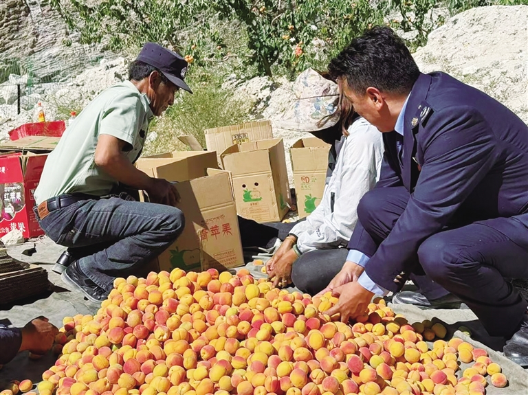 七月的底雅鄉(xiāng),昆侖山的融雪順著溝壑淌進(jìn)果園,滋潤著枝頭累累碩果。阿里地區(qū)稅務(wù)局駐丁固村工作隊(duì)將紅色宣傳旗插在鄰村什布奇村的杏林邊,與金燦燦的果實(shí)相映成趣。駐村隊(duì)員們和村民們一同蹲在田埂上,他們圍繞特色林果業(yè)發(fā)展這一主題,用通俗易懂的方式講解稅費(fèi)政策,讓村民們聽得懂、記得住、用得上。