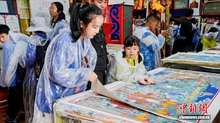 圖為“粵藏同行新時代·石榴籽一家親”活動現場學生體驗繪制民族團結卷軸繪畫。林芝市文旅局供圖