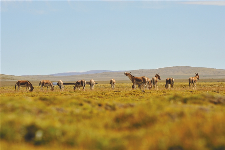 三江源國(guó)家公園唐北片區(qū)內(nèi)的藏野驢。記者 趙書(shū)彬 攝