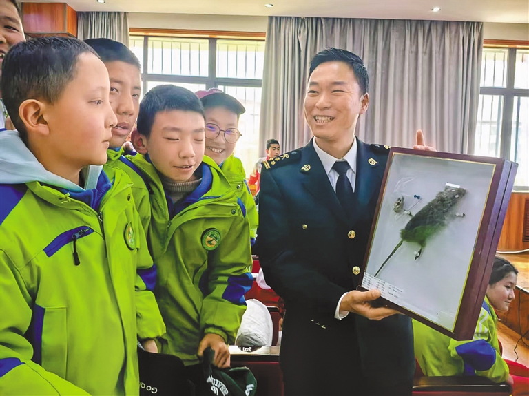 “同學(xué)們,這個(gè)圓柱形的赤褐色小蟲(chóng)子,大家知道是什么嗎?它可是木材的‘隱形殺手’……”近期,在拉薩市第七中學(xué)課堂上,海關(guān)關(guān)員通過(guò)實(shí)物標(biāo)本展示,向120余名師生生動(dòng)講解檢疫性有害生物雙鉤異翅長(zhǎng)蠹的危害。活動(dòng)現(xiàn)場(chǎng),海關(guān)關(guān)員通過(guò)展示外來(lái)入侵物種標(biāo)本、講解“異寵”及外來(lái)物種入侵危害知識(shí),幫助同學(xué)們了解《中華人民共和國(guó)生物安全法》等相關(guān)法律法規(guī),引導(dǎo)青少年樹(shù)立生物安全意識(shí),積極守護(hù)生態(tài)安全。