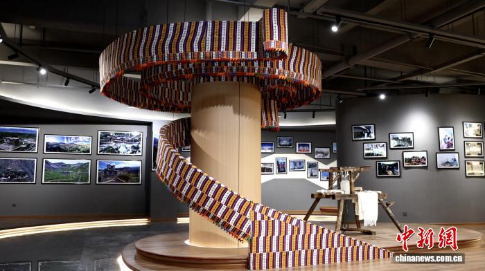 作為扎囊縣“氆氌之鄉(xiāng)”的靈魂技藝,這里陳列著傳統(tǒng)織布機、多彩氆氌的實物,旋轉式柱子上展示的氆氌成品更是令人驚嘆:既延續(xù)著千年羊毛紡織的溫暖質(zhì)感,又透著當代匠人對傳統(tǒng)技藝的新鮮詮釋,展示扎囊人民代代相傳的智慧與對生活的熱愛。